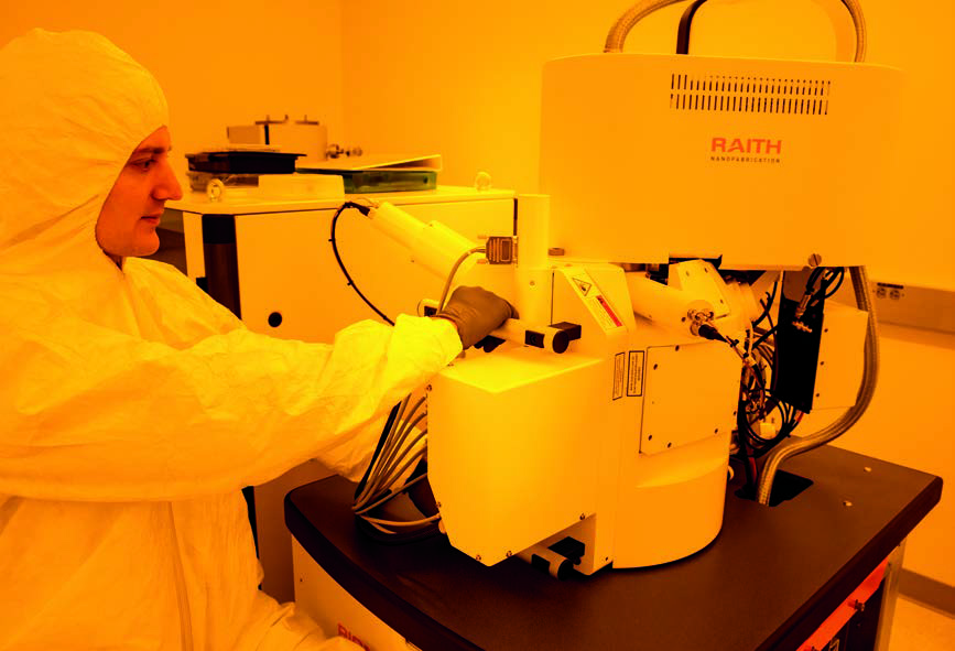 Like Dr. Li, Assistant Professor Volker Sorger of the Department of Electrical and Computer Engineering also is prospering in the SEH nanofabrication lab. Dr. Sorger studies photonics, which is optics integrated on a chip, to create the nanoscale chips necessary to develop computers that will operate on light rather than electronics.