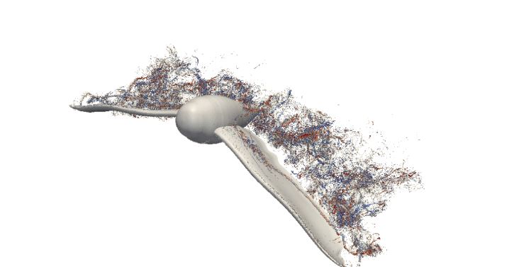 “The topic is really fascinating and their experiments are unique,” he says. “We designed a research program that utilizes our computational models and their experiments in a synergetic manner to provide a look into the physics of this problem at a level of detail never achieved before. The computational model, among other things, serves as a platform to perform ‘numerical experiments,’ where one or more or the micro-features that are unique to the owls wing morphology can be switched on and off to observe the impact on sound generation.”